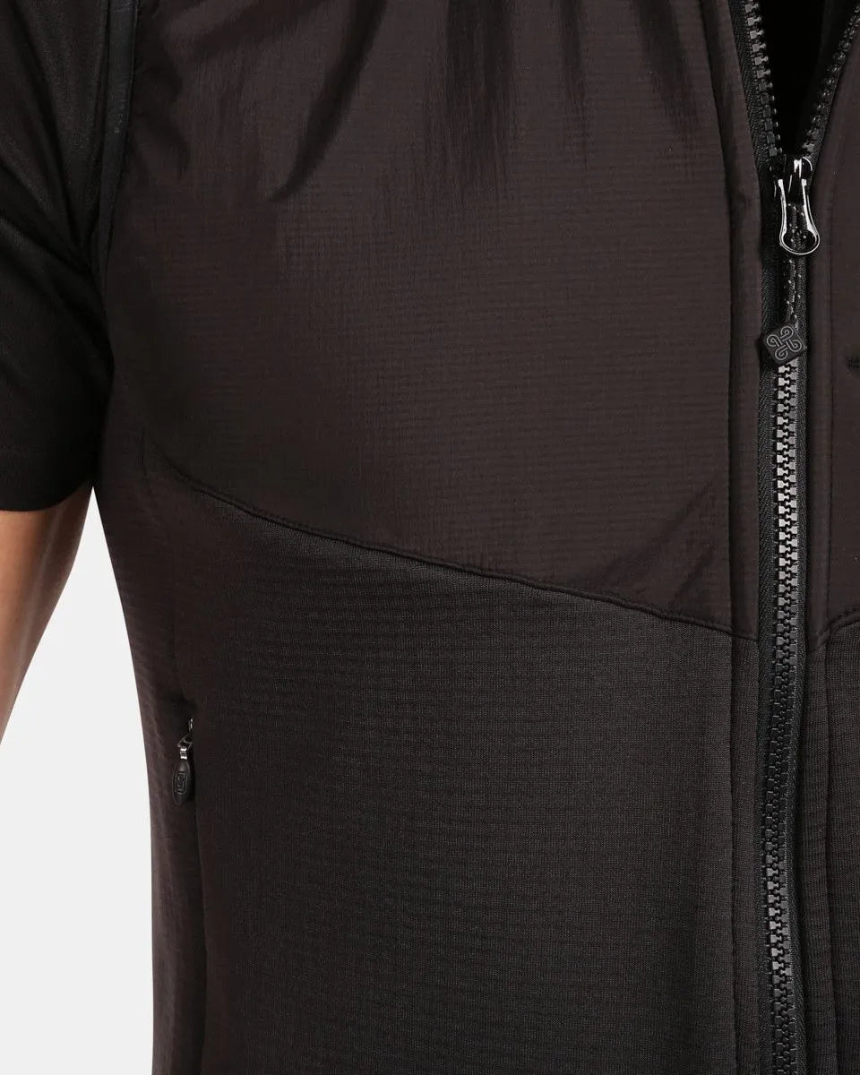 Kilpi lenia-m is a hybrid sports vest combining two materials to achieve maximum comfort. The body uses structured opti-heat fleece material which is pleasantly warm elastic wicks moisture well from the lower layers and serves well as an insulating layer. The shoulders and hood are covered with a fabric that is more resistant to abrasion for example when wearing a backpack while protecting critical areas against blowing. The vest has a hood with an inner mesh lining and a higher collar two zip pockets and a chest zip pocket for a mobile phone. We recommend this vest kilpi lenia-m for outdoor or sports activities in colder weather. Model in the photo: size m height 189 cm chest circumference 100 cm waist circumference 84 cm hip circumference 102 cm.