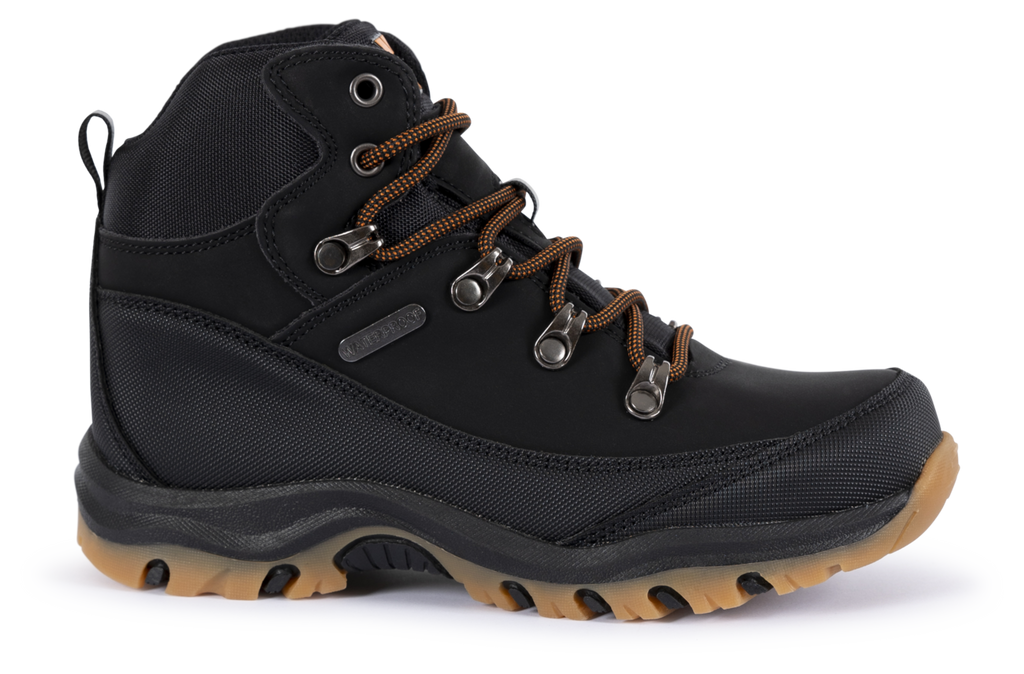 Mid cut walking bootwaterproof and breathable membranegusseted tongueprotective all-round mudguardcushioned collardurable traction outsole
