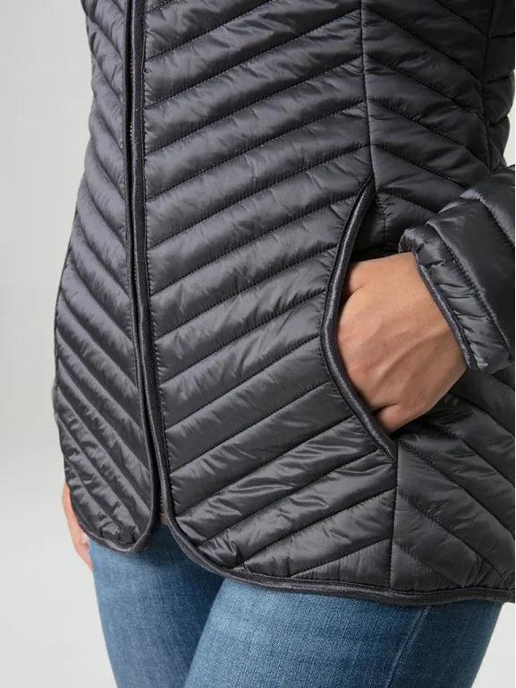 Le cuciture esemplari non sono solo esteticamente attraenti, ma garantiscono anche una distribuzione uniforme del riempimento. La finitura del tiro lucido conferisce alla giacca un aspetto lussuoso che rende completo ogni outfit.