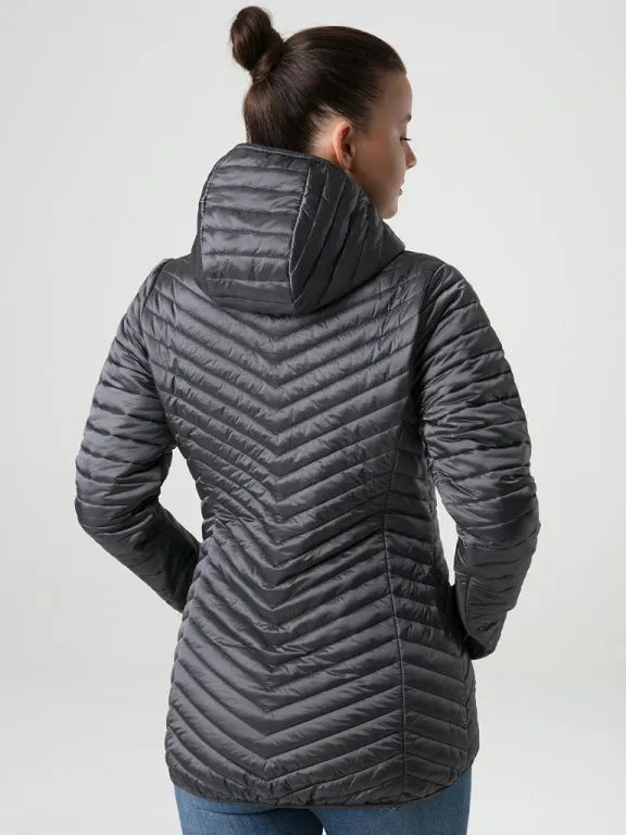 Con un bordo posteriore leggermente esteso a forma di arco elegante e un cofano integrato, questa giacca offre sia lo stile che la protezione contro gli elementi. I bordi elastici sulle maniche e sul fondo assicurano una vestibilità perfetta.
