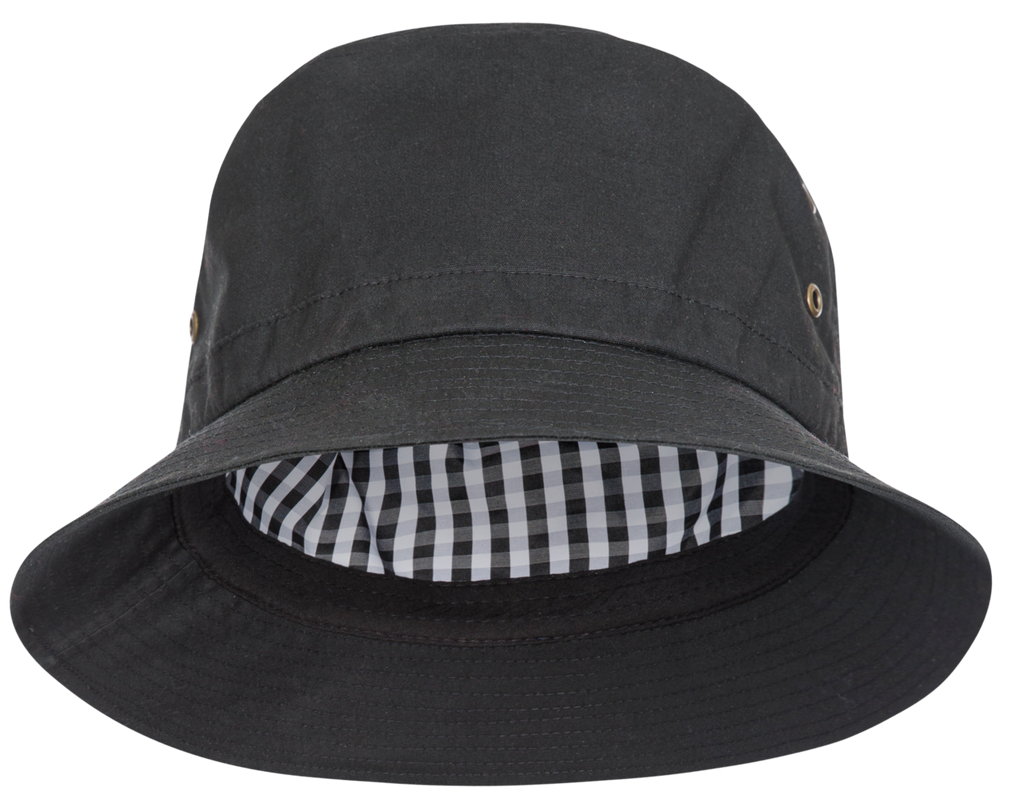 Pu badgewaxed bucket hatwater-repellentwide brim