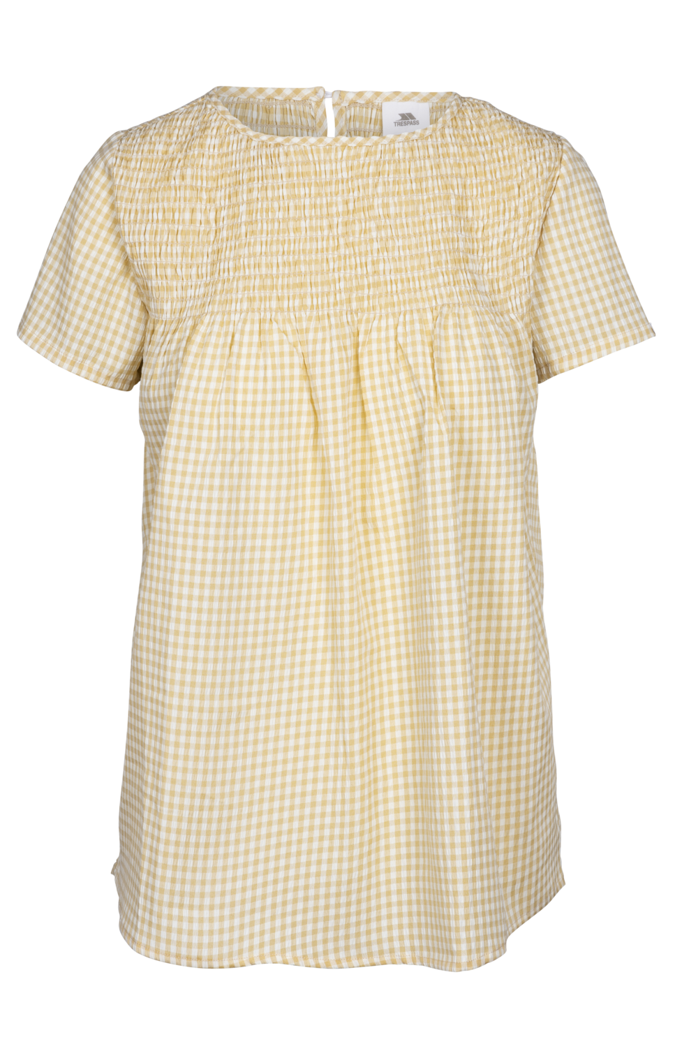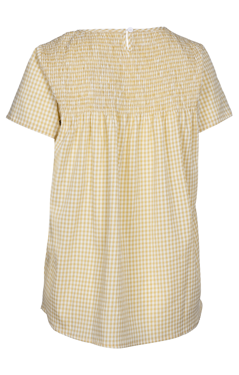 Smock topshirred detail kulatý výstřih krátký rukáv zapínání na knoflíky s dírkou vzadu