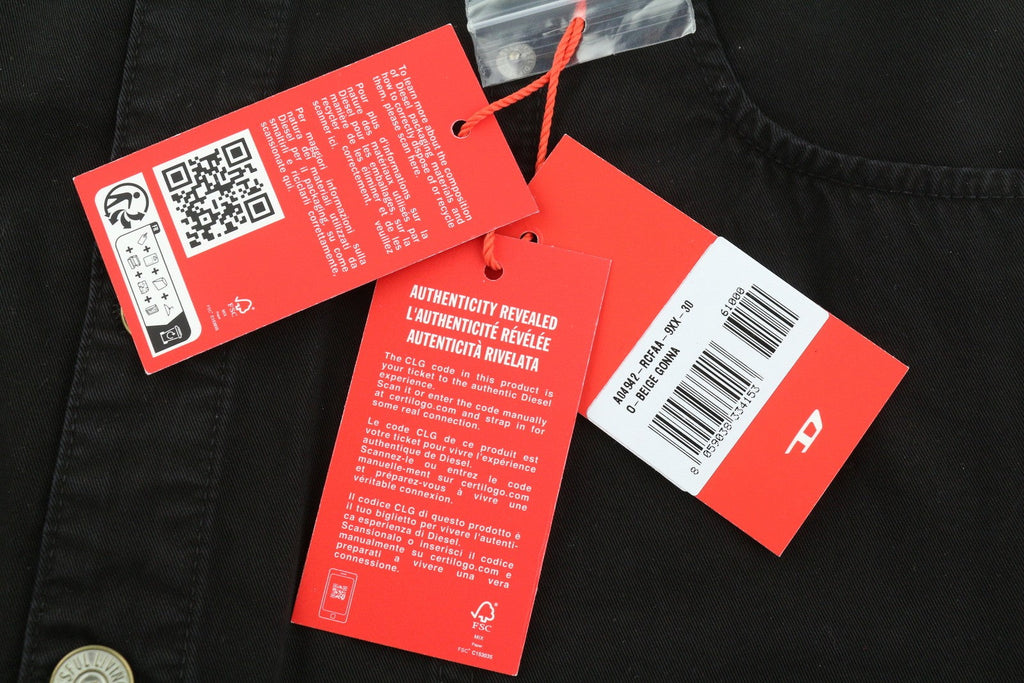 Diesel O-beige damenederdel sort bomuldsknap Flue-mininederdel