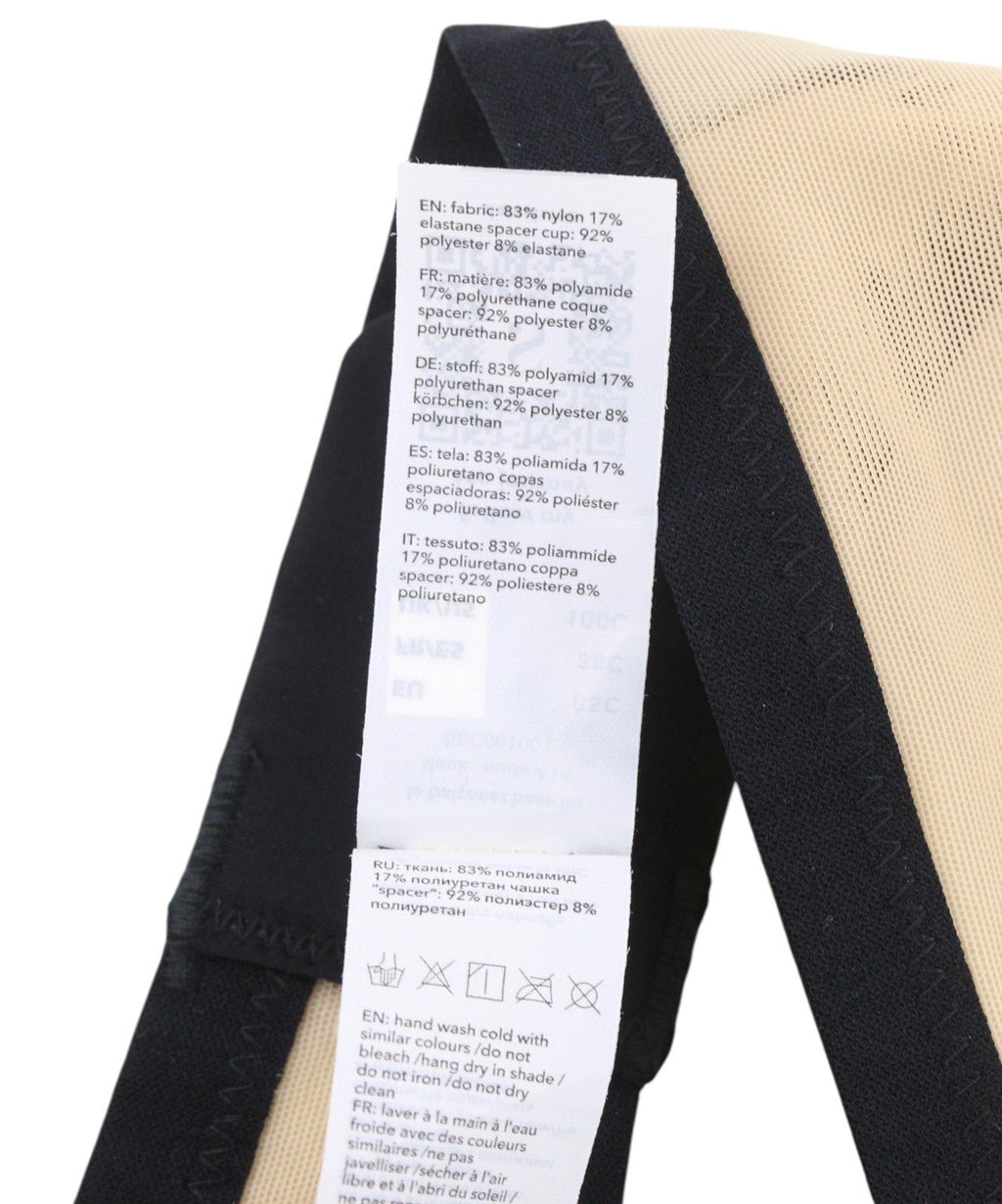 brand new size : 75bmaterial : 83% nylon 17% elastanecup size : bcountry of origin : italycolor : beigenumber of pieces : 1 packinsulation material : eye & hook