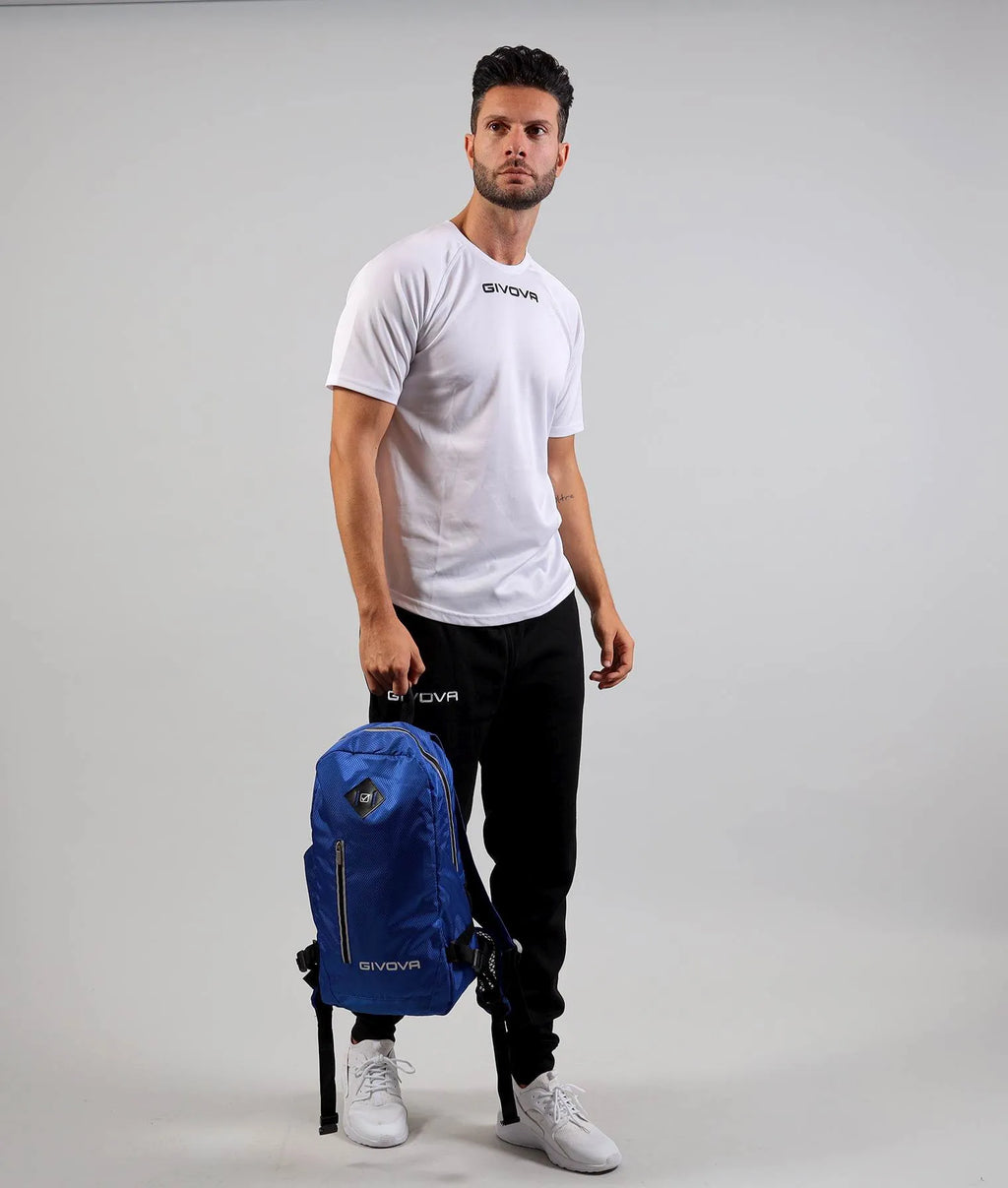 Givova Rucksack für sportliche Aktivitäten, Freizeit und Reisen. Der Givova Arius Sportrucksack ist ein universelles Modell für sportliche Aktivitäten, Training, Rennen und Reisen. Der Rucksack fällt kleiner aus. Es besteht aus strapazierfähigem Material, sodass Sie sich keine Sorgen über schlechtes Wetter oder ungünstigeres Gelände machen müssen. Der Rucksack ist leicht zu tragen und funktional. Gepolsterte und verstellbare Schultergurte sorgen für Komfort, auch wenn sie den ganzen Tag getragen werden. Verschlossen wird die Kammer mit einem praktischen doppelseitigen Reißverschluss. Auf der Vorderseite finden Sie eine kleinere Tasche mit einem Reißverschluss mit längerem Zug. Reflektierende Elemente sorgen für mehr Sicherheit bei schlechten Sichtverhältnissen. Die Givova-Logo-Dekoration darf nicht fehlen. Material: 100 % Polyester. Maße: 15 x 25 x 45 cm