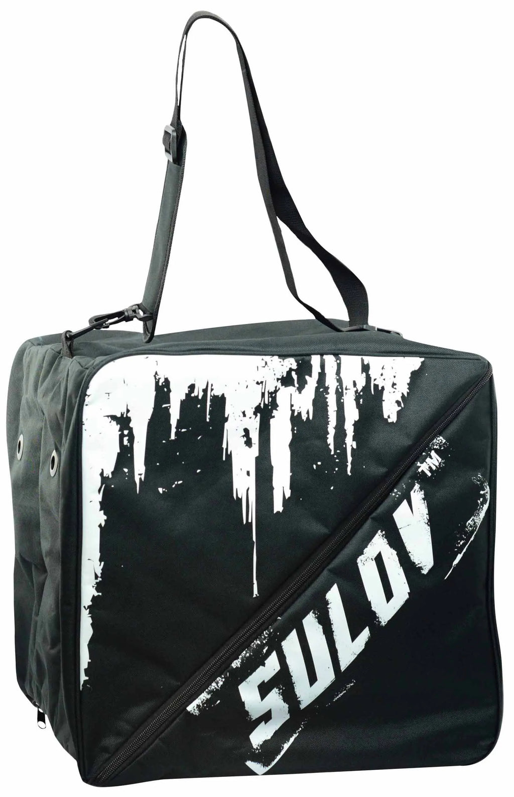 Mála bróg uathúil le haghaidh 3 phéire buataisí síos an cnoc. - 6 rannóg ar leith zipped ina n-aonar - strap ghualainn inscortha - láimhseáil beag le hiompar ar láimh - ceangail sheachtrach zip - toisí 6 pholl aerála: 43 x 40 x 35 cm (w x h x d) ábhar: 600d poileistear brataithe le pvc