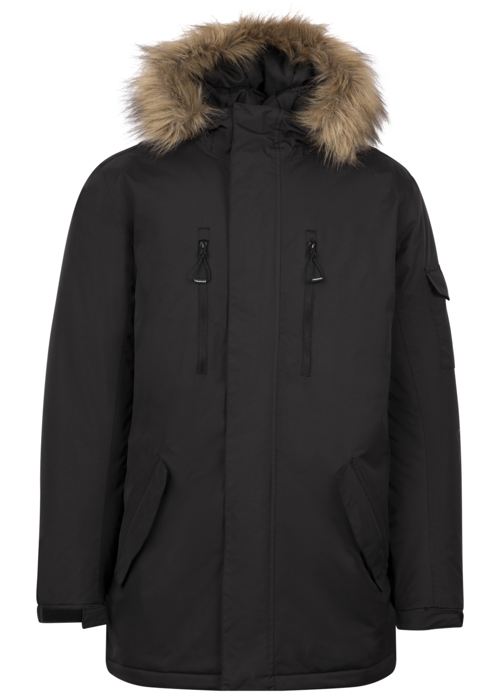 Baile Átha Troim fionnaidh padded inbhainte le flap stoirme zipouter ceangailte le snaps i bhfolach2 póca zip cófra póca slinne le graí flap coigeartóir cochall fasteningback le cufaí i bhfolach faoi flapflat le coigeartóirí velcro póca paiste ar a muinchille