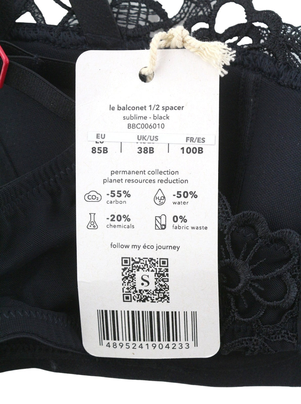 taglia nuovissima: 85bmateriale: 83% nylon 17% elastandimensione della tazza: bpaese di origine: italiacolore: neronumero di pezzi: 1 confezionemateriale isolante: occhiello e gancio