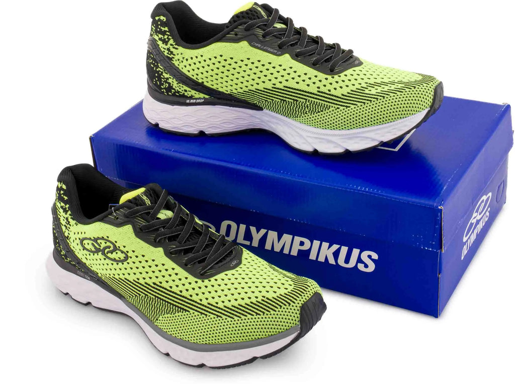 Olympikus running shoes with a 10 mm drop eva sense insole and elevate pro solution the functionally packed and very comfortable olympikus challenger 2 running shoes are the right model for demanding runners. The shoes are designed for runners with a neutral impact with a 10 mm heel-to-toe drop. They offer a really great-looking design with top-quality workmanship using a breathable knit of dense seamless mesh. The shoe has a pleasantly soft eva sense insole and the midsole offers a special shaping with a solution to reinforce the back for greater stability including the outer heel cup. The elevate pro foam used is one of the lighter and better dynamics for rebound. The classic lacing does not lack a rear eyelet for tying a running loop. The sole is covered over the entire surface of the contact surfaces with durable abrasive gripper rubber which guarantees good grip even on slightly unpaved surfaces. Material: synthetics textiles eva tpu rubber