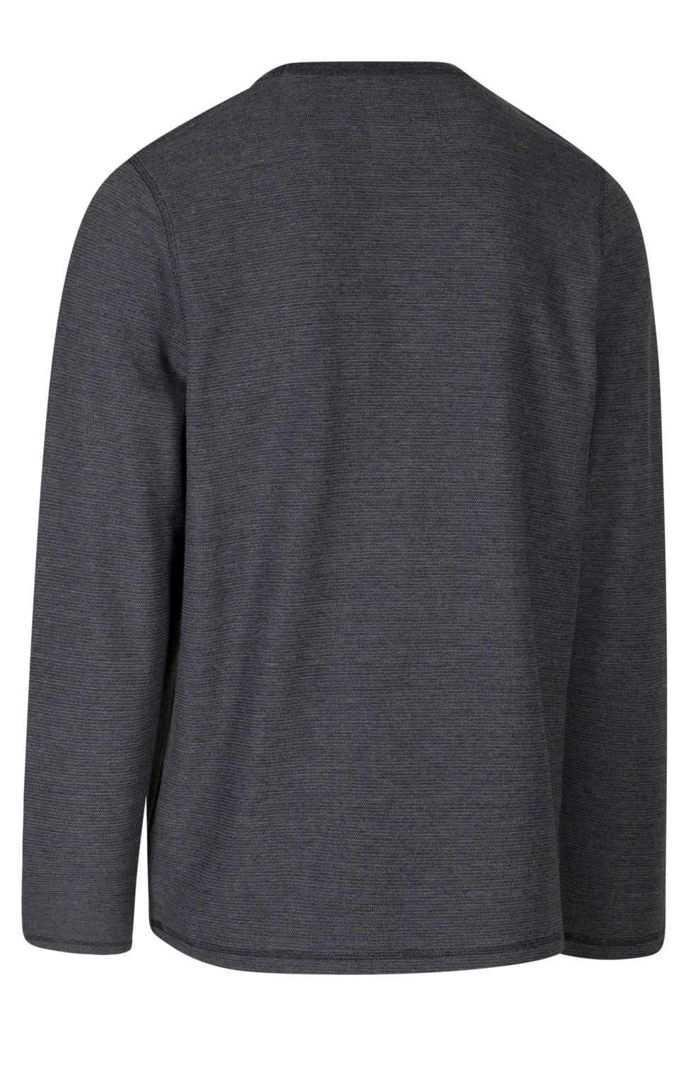 Textured marl knitround neckcover stitch detaillong sleevesback neck binding detail