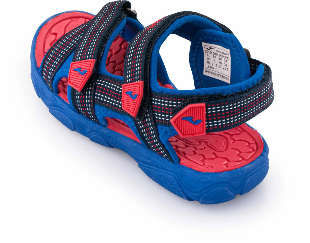 Sandale Joma copii ultra ușoare și confortabile sandale sport băieți/fete ideale pentru plimbări scurte pe vreme uscată și caldă și pentru ca cei mici să alerge confortabil, să joace și să sară. Au o croială extra-potrivită datorită închiderii triple. Croiala este realizata din benzi textile usoare si rezistente. Aceste sandale au garantat o închidere cu triplu adeziv pentru a se adapta cât mai mult la picior. Una dintre ele este întărită în călcâi pentru un confort sporit la mers. Brantul de masaj anti-alunecare maximizeaza senzatia de confort. Talpa este realizată din cauciuc durabil, foarte rezistent la uzură, cu diferite modele pentru a optimiza aderența la sol. Așa că poți merge în siguranță.