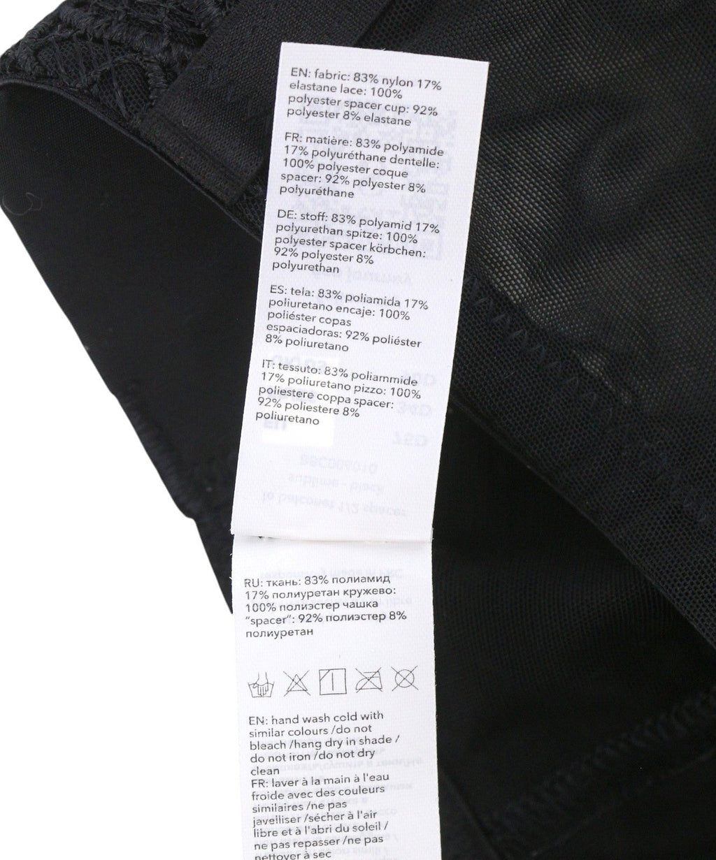 brand new size : 80ematerial : 83% nylon 17% elastanecup size : ecountry of origin : italycolor : blacknumber of pieces : 1 packinsulation material : eye & hook