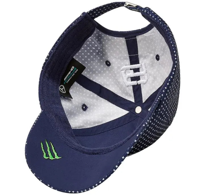 Oficiálna tímová čiapka mercedes-amg petronas formuly 1 špeciálne navrhnutá pre jazdca Georga Russella. Je vyrobená z materiálu odvádzajúceho vlhkosť, takže sa v nej budete cítiť pohodlne po celý deň. Čiapka george russell japan gp, ktorá bola vydaná v spojení s formulou 1 japan gp™. Čiapka je v indigovo modrej farbe s unikátnou celoplošnou potlačou inšpirovanou tradičnými japonskými indigovými textíliami a remeselným spracovaním. Podrobnosti: japonská gp george russell špeciálna edícia logo george russell 63 na zadnej strane elastický zakrivený lem reliéfna nastaviteľná pracka na chrbte tím a logá sponzorov jedna veľkosť pre všetko materiál: 100% polyester