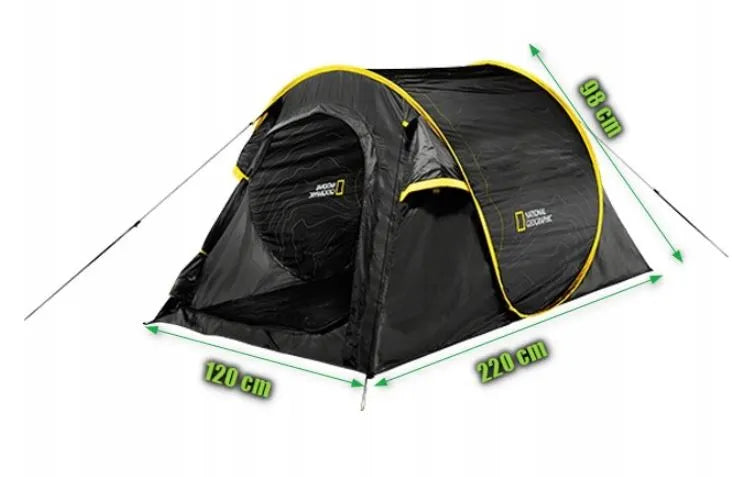 National Geographic 2-miestny samoskladací stan National Geographic 2-miestny samoskladací stan (kód al0081) s vodným stĺpcom 2000 mm je jedinečným riešením pre páry, ktoré ocenia rýchlosť a jednoduchosť inštalácie miesta na pobyt pri outdoorových dobrodružstvách. Jeho ľahká konštrukcia a intuitívny mechanizmus rozkladu vám umožní rýchlo vytvoriť pohodlný priestor na spanie takmer v akomkoľvek teréne. Nevyhnutnosťou sú tri vetracie otvory - určené na cirkuláciu vzduchu a zabraňujúce kondenzácii. Rýchla montáž: okamžité nastavenie: vďaka samoskladacej konštrukcii je stan pripravený na použitie v priebehu niekoľkých sekúnd. nahodiť a rozložiť stan nevyžaduje náročnú montáž. Vyberte stan z prepravnej tašky a odstráňte gumičky. Nestavajte stan v blízkosti iných ľudí, aby ste predišli zraneniu. Uchopte strednú časť rámu oboma rukami a otočte ho o 180° smerom von - stan sa sám rozloží. Stan zaistite kolíkmi a lanami - a je pripravený na použitie. Hmotnosť: 1,45 kg rozmery stanu: 220 x 120 x 98 cm (d x š x v) rozmery po zbalení: 57 x 56 x 5,5 cm (d x š x h)