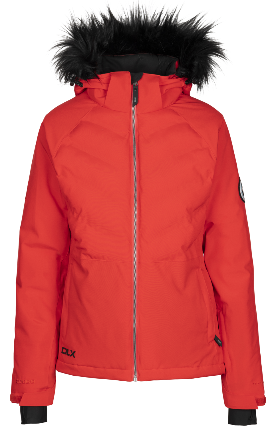 Down touch fyllsvetsade bafflar på bröstet justerbar huva med dragkedja med avtagbar fuskpälskant vattenavvisande dragkedja i mitten framtill 2 nedre dragkedjefickor med dragkedja liftkortsficka på ärmen avtagbar snökjol dragsko med justerbar ventilation under armarna i inre stretch, justerbar manschettflikar och ljudficka/kanal